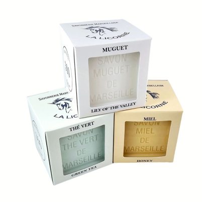 La gamme d’authentiques Savons de Marseille parfumés dans leur célèbre format cube fabriqués par la savonnerie La Licorne, vous procure une expérience sensorielle sans comparable. De haute qualité et de grande renommée, qui sont livrés et appréciés aux quatre coins du monde.