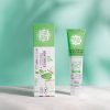 Au goût frais de menthe, le dentifrice est débarrassé de toute substance controversée : il est sans sulfates, sans dioxyde de titane, sans triclosan, sans aluminium, sans PEG, sans parabène, sans propylène glycol. Qu’est-ce qu’on y a mis à la place ?