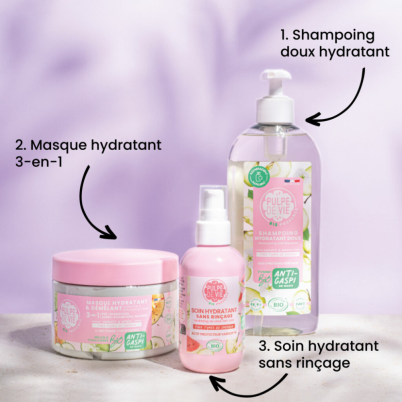 Produit 3-en-1 : Pré-shampooing, après shampooing & masque.