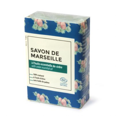 Un savon cuit au chaudron, pur huile d’Olive et parfumé à l’huile essentielle 100% naturelle de Cèdre.