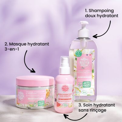 Sans sulfate agressif, ni PEG, ni parabène, mais avec 99% d’ingrédients d’origine naturelle, de l’eau de pomme BIO, et de l’aloe Vera protecteur. Ce shampooing a tout bon !