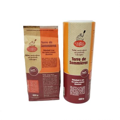 Cette terre est un formidable détachant à sec sans auréole, des taches grasses (huile, beurre, gazole, maquillage, etc…) sur des surfaces fragiles telles que les textiles (même la soie), les tissus d’ameublement mais aussi les tapis, les cuirs, les marbres, le granit, l’ébénisterie, les sols (carrelage, pierre, parquet, béton)…